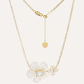 Discover our elegant mother of pearl flower necklace with sparkling crystals. A unique and beautiful statement piece for any occasion. Shop now!Â